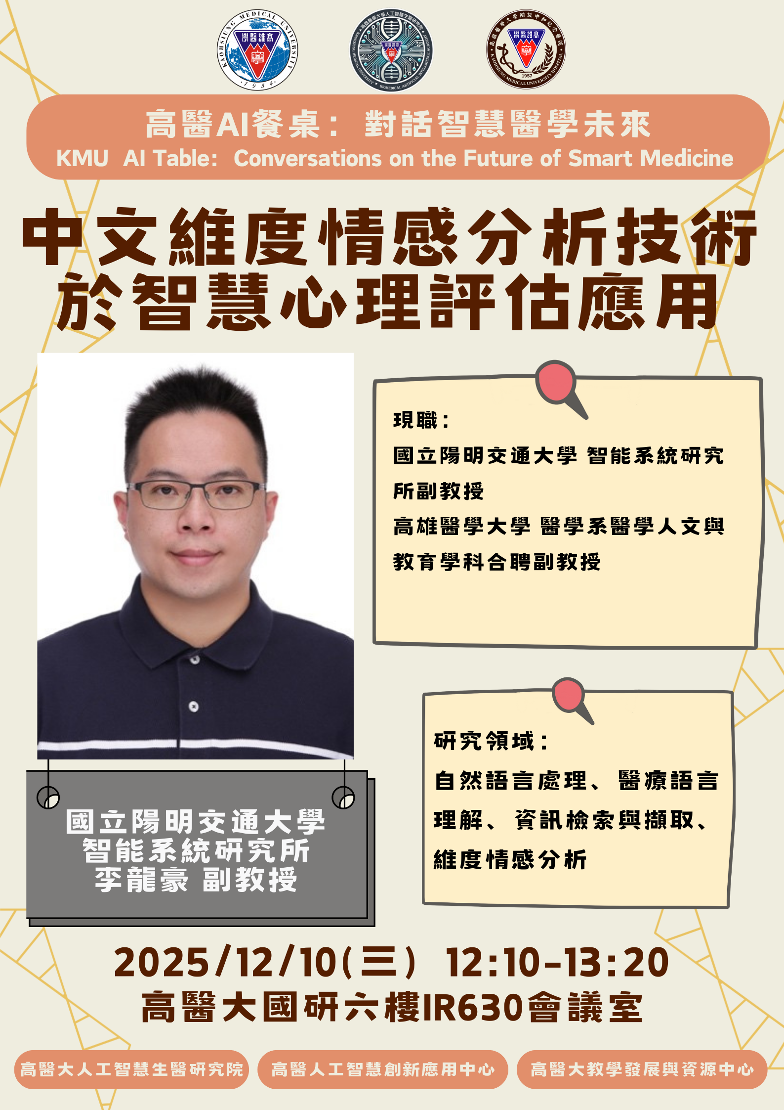 • 演講主題:中文維度情感分析技術於智慧心理評估應用 (活動海報)